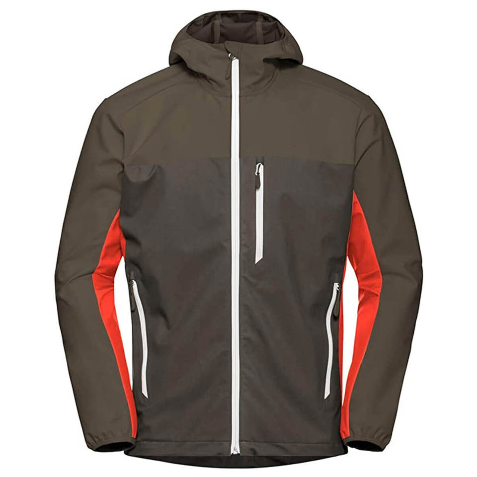 เสื้อแจ็คเก็ตซอฟต์เชลล์ผู้ชายสั่งทำพิเศษ สำหรับฤดูใบไม้ร่วงและฤดูหนาว แบบซิป กันน้ำ เป็นมิตรกับสิ่งแวดล้อม กันลม ระบายอากาศได้ดี ผ้าแคนวาส คอตั้ง ด้านหน้า