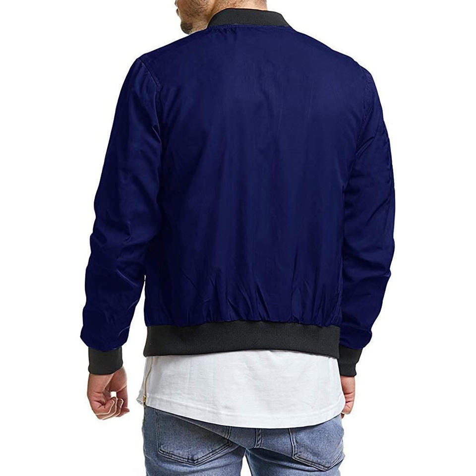 เสื้อแจ็กเก็ตบอมเบอร์ผ้าไนลอนสำหรับผู้ชายมีปกตั้งส่งตรงจากผู้ผลิต-ผ้าใบสีล้วนสำหรับฤดูหนาวทำตามสั่ง