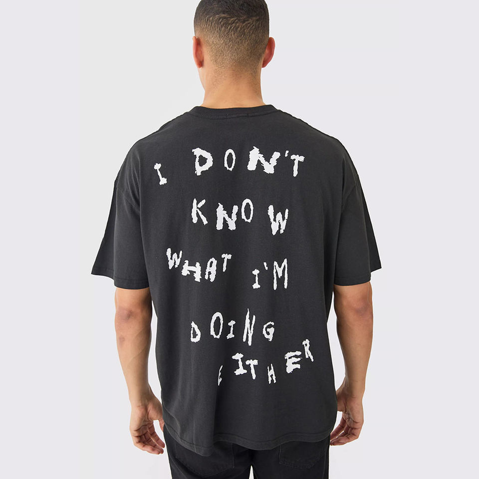 เสื้อยืดสำหรับผู้ชายทรงโอเวอร์ไซส์และเข้ารูปแบบวินเทจพิมพ์ลายไหล่ตกออกแบบได้ตามต้องการ