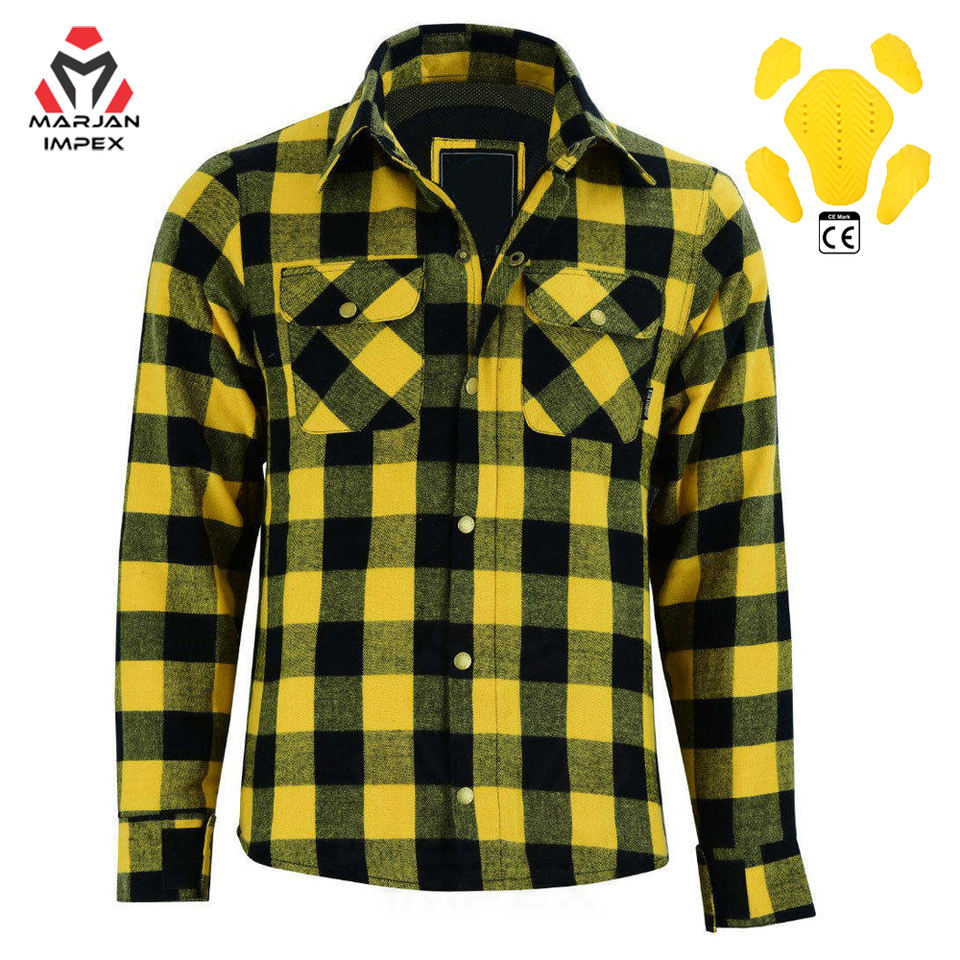 Custom Made Mens Plaid Flannel Motorcycle Shirt With Padding Racing Jersey Style Cotton Jacket