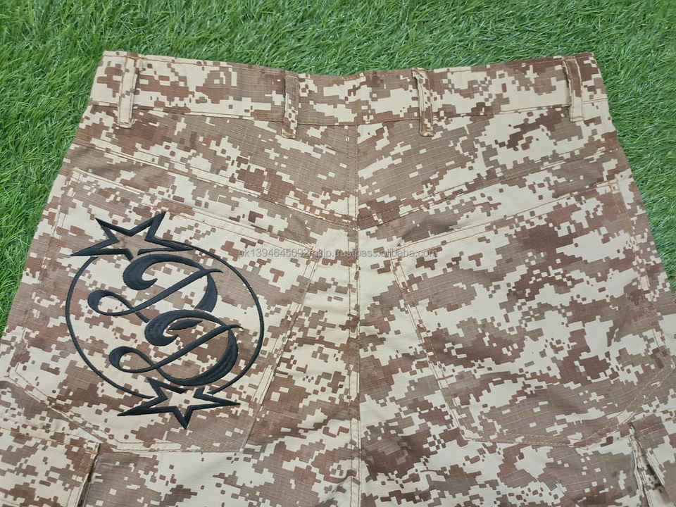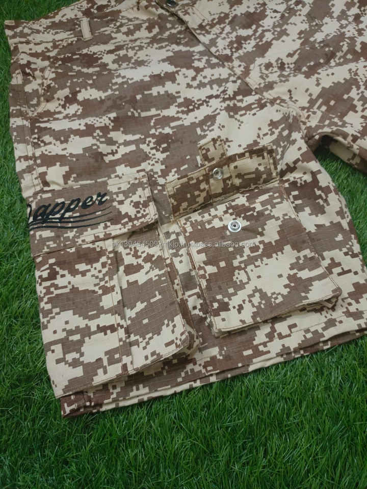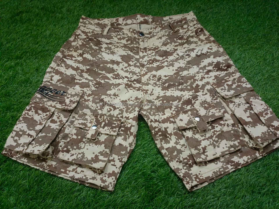 กางเกงผ้าฝ้ายเอวยางยืดลำลองมีกระเป๋ายาวถึงเข่าสำหรับผู้ชายกางเกงขาสั้นมีกระเป๋าทรงคาร์โก้ลายพรางสำหรับใส่ในฤดูร้อนออกแบบได้ตามต้องการ