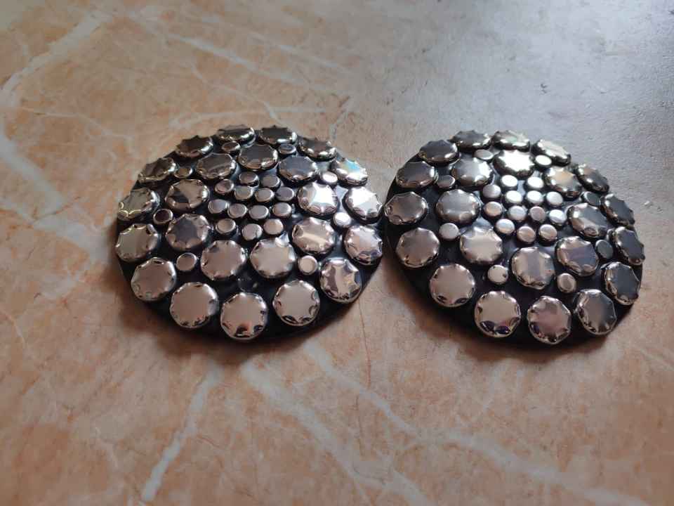 คอนโชทำจากโลหะทองเหลืองพร้อมงานฝังและแกะสลักในหลายสีไอเดียสำหรับการผลิตเข็มขัดที่เหมาะสำหรับการขายคืน