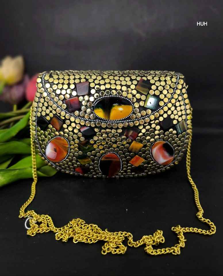 กระเป๋าออกงานกลางคืนกันน้ำ งานฝีมือโลหะโมเสค ประดับกระเบื้องสะท้อนแสง ปิดด้วยกระดุม ดีไซน์หรูหรา ระยิบระยับ สำหรับการแต่งตัวแฟชั่นระดับไฮเอนด์