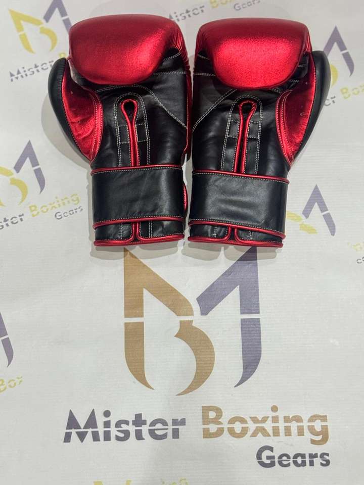 ถุงมือชกมวยสีแดงเมทัลลิกสั่งทำพิเศษ ไม่มีมวยชกไม่มีชีวิต ถุงมือชกมวยมืออาชีพทำมือจากหนังวัวแท้สำหรับฝึกซ้อมและแข่งขัน