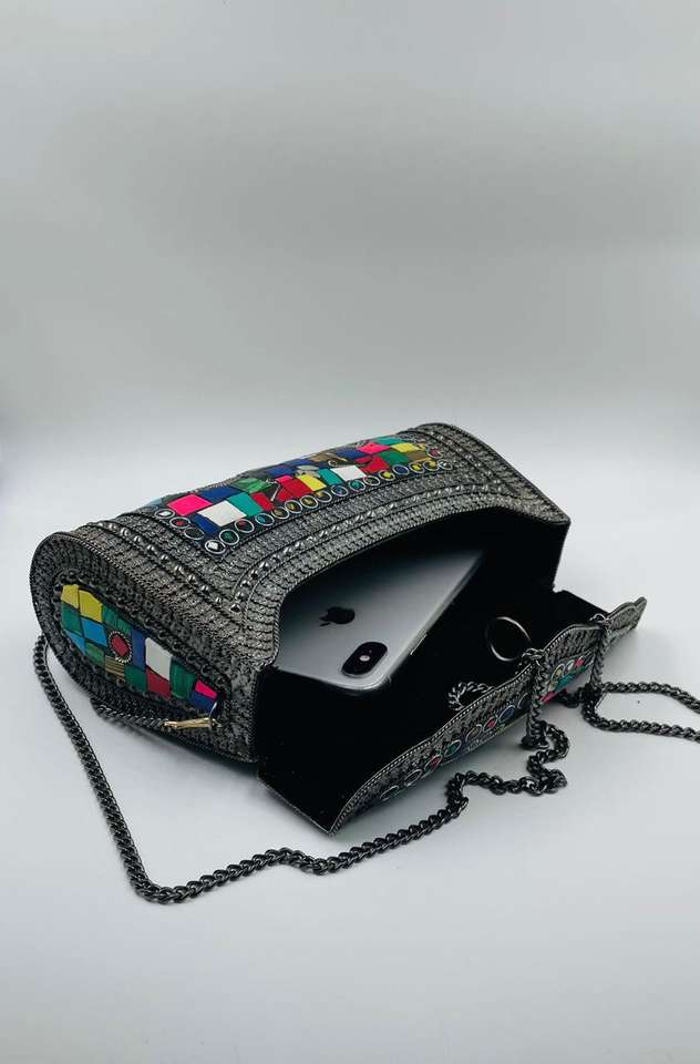 Custom Made Mosaic Tribal rainbow Applique Tribal Bags Ideal for Resale by Fashion Accessory Stores and Fashion Designers