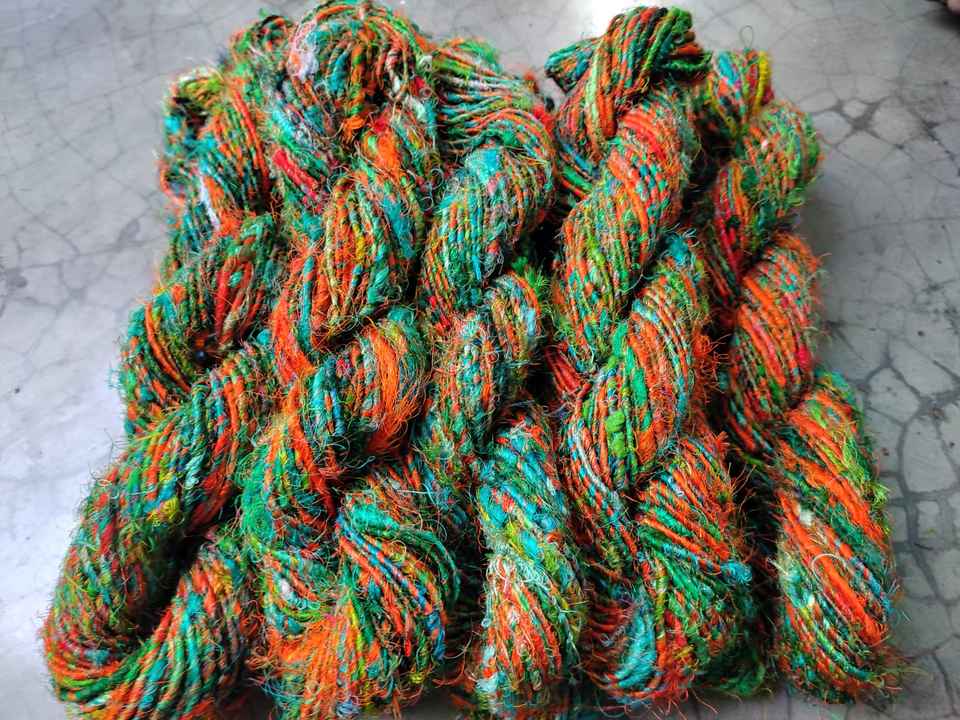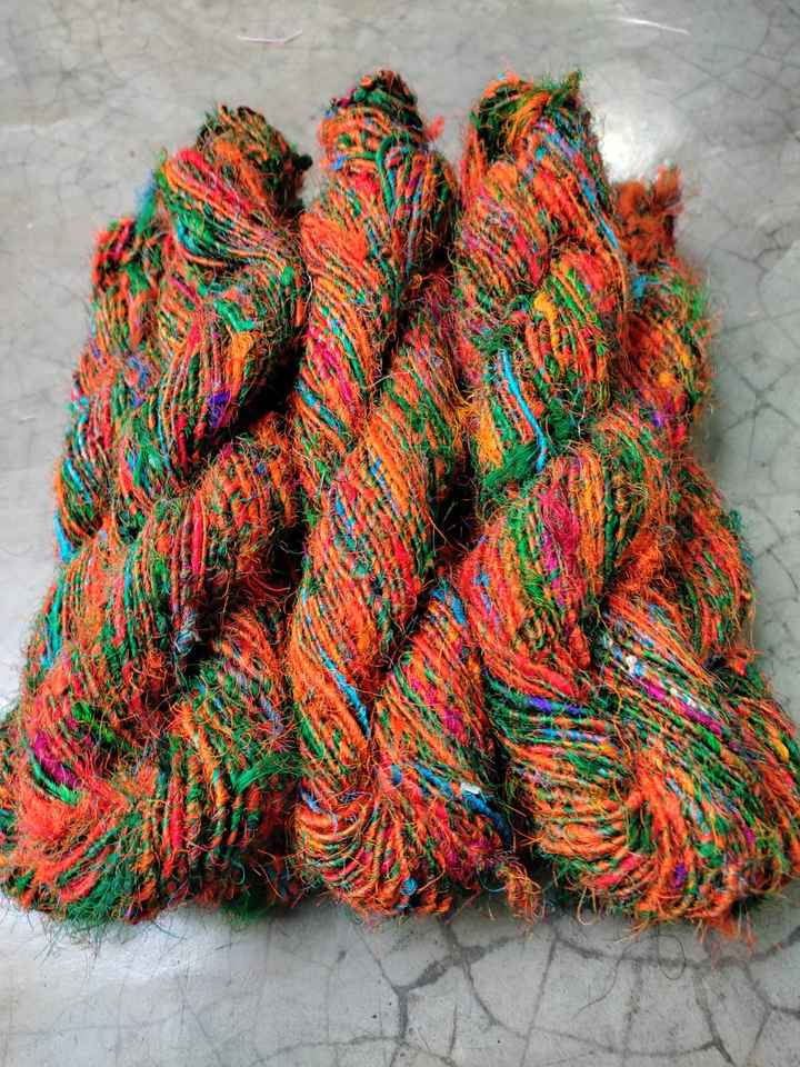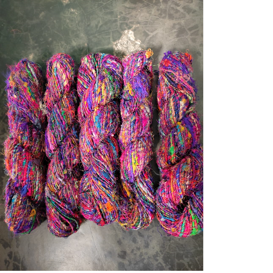 ริบบิ้นผ้าไหมส่าหรีหลากสีสันสั่งทำพิเศษ ผลิตจากเส้นใยผ้าส่าหรีรีไซเคิล เหมาะสำหรับร้านขายเส้นด้ายและเส้นใย