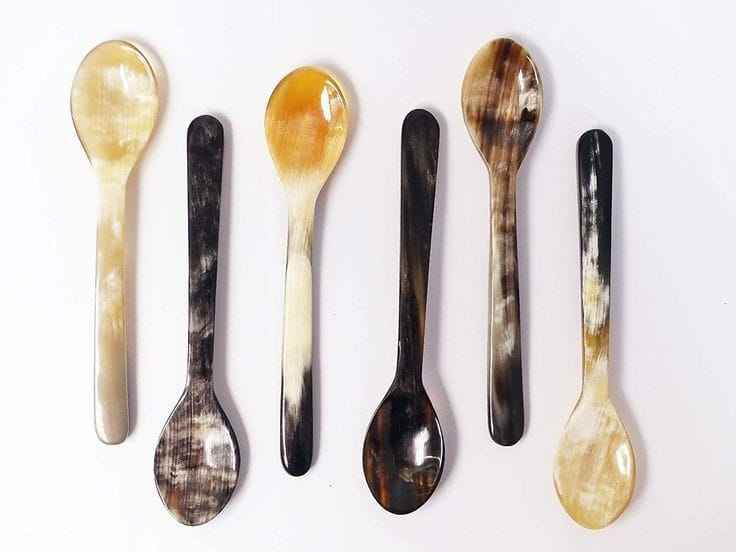 เครื่องใช้บนโต๊ะอาหารทำจากเขาควายธรรมชาติช้อนตกแต่งในครัวช้อนและส้อมหัตถกรรมซามิ