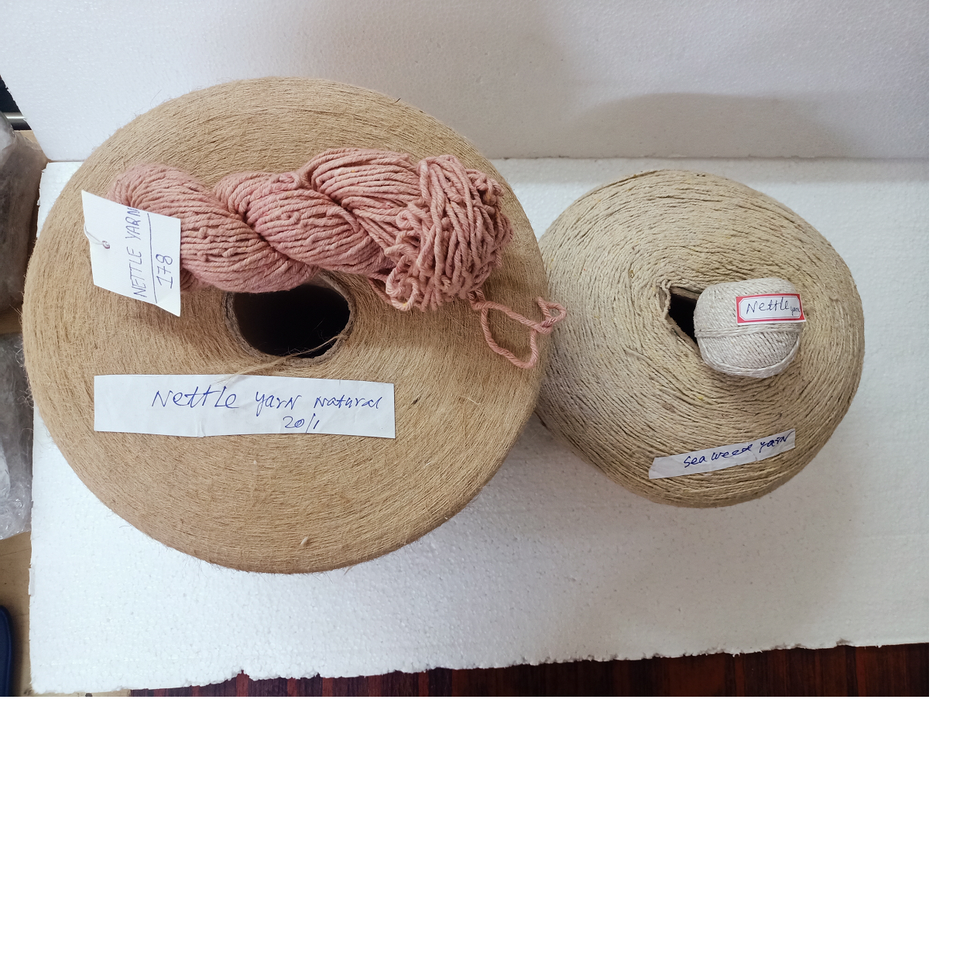 เส้นด้ายเส้นใยธรรมชาติสั่งทําพิเศษทําจากวัชพืชทะเล หญ้าคาว และสับปะรด มีจําหน่ายในตัวเลขคละสําหรับร้านขายเส้นด้ายและเส้นใย