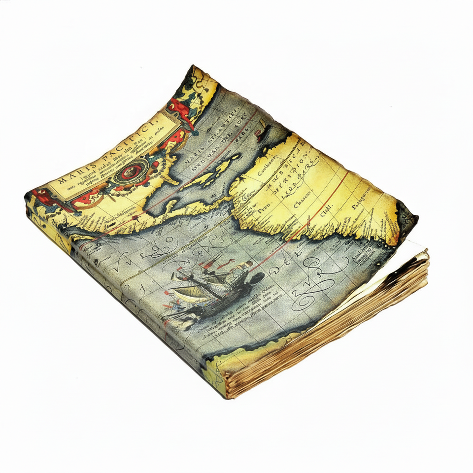 ทำเองดูเก่าวารสารการเดินทางทำโดยใช้เอกสารดูโบราณเก่าที่มีแผนที่วินเทจพิมพ์