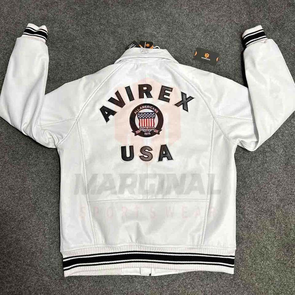 แจ็คเก็ตหนังวัวแท้ Avirex รุ่นสั่งทำพิเศษสำหรับกิจกรรมกลางแจ้ง ขายดี คุณภาพสูง ดีไซน์ทันสมัย กันลม สีขาว