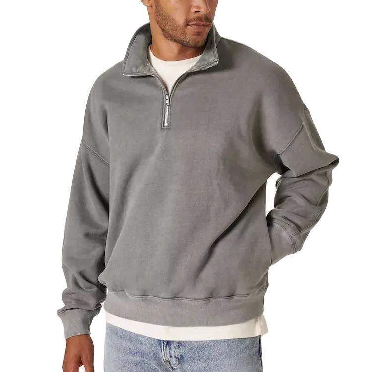เสื้อสเวตเชิ้ตผู้ชายแบบซิปครึ่งตัว ผลิตตามสั่ง ผ้าโพลีเอสเตอร์/คอตตอน 400 GSM สำหรับฤดูใบไม้ผลิ ไซส์พลัส สวมใส่สบาย สไตล์สตรีทแวร์ ทรงโอเวอร์ไซส์ เป็นมิตรต่อสิ่งแวดล้อม