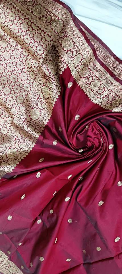 ผ้าไหมบร็อเคดสั่งทำพิเศษ ขอบทอง ยาว 5 เมตร สำหรับร้านขายผ้าส่าหรี ลายเพสลีย์สีน้ำเงิน
