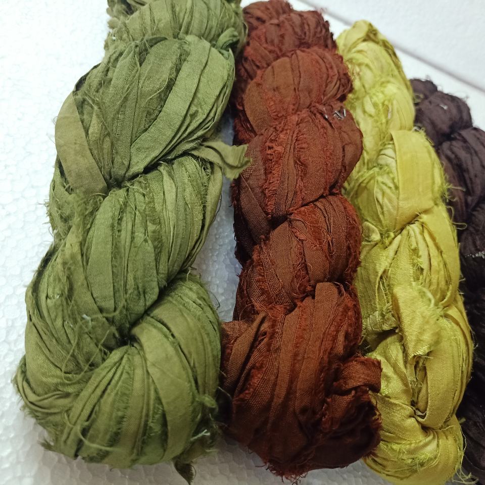 ริบบิ้นผ้าไหมส่าหรีรีไซเคิลทำจากผ้าไหมสีทึบเหมาะสำหรับงานศิลปะและงานฝีมือ