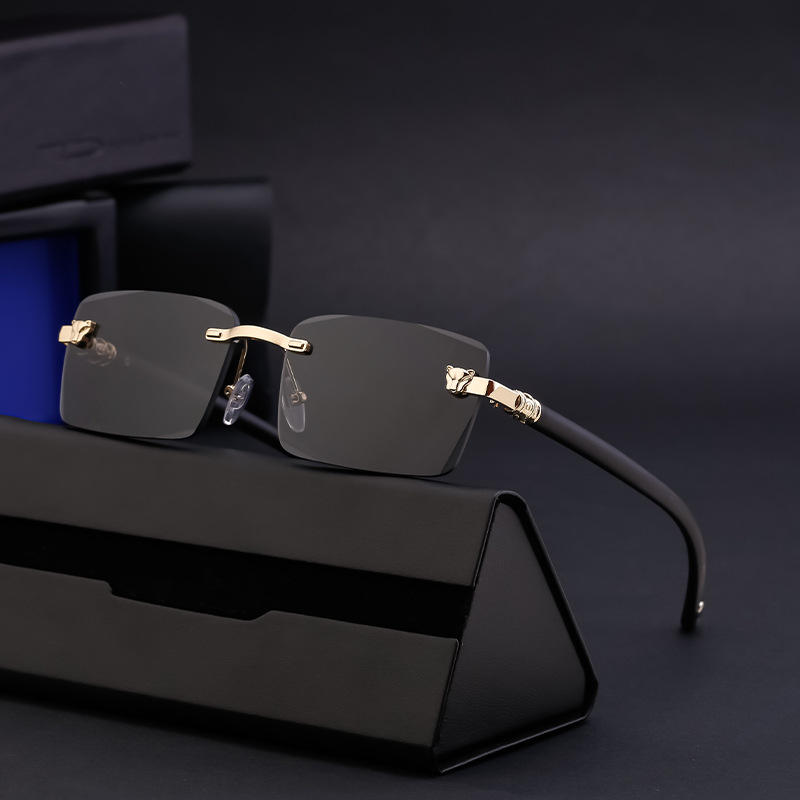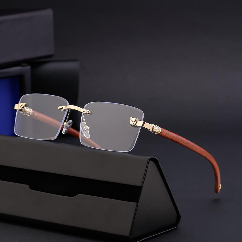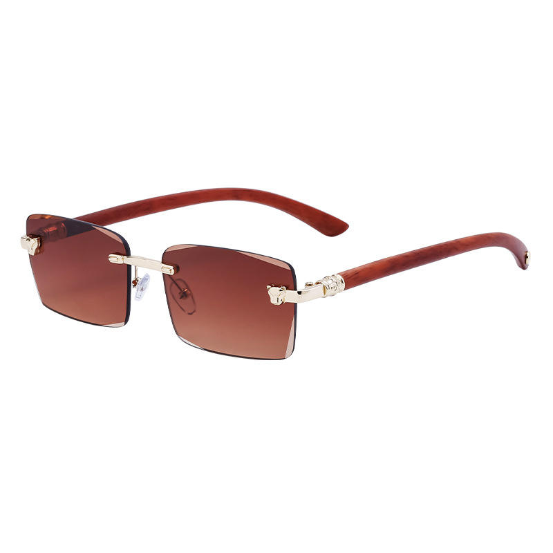 แว่นกันแดดทรงเรโทรไร้กรอบแบบสั่งทำพิเศษสำหรับผู้ชาย พร้อมขาแว่นลายไม้ ป้องกันรังสียูวี 400 ระดับ 2