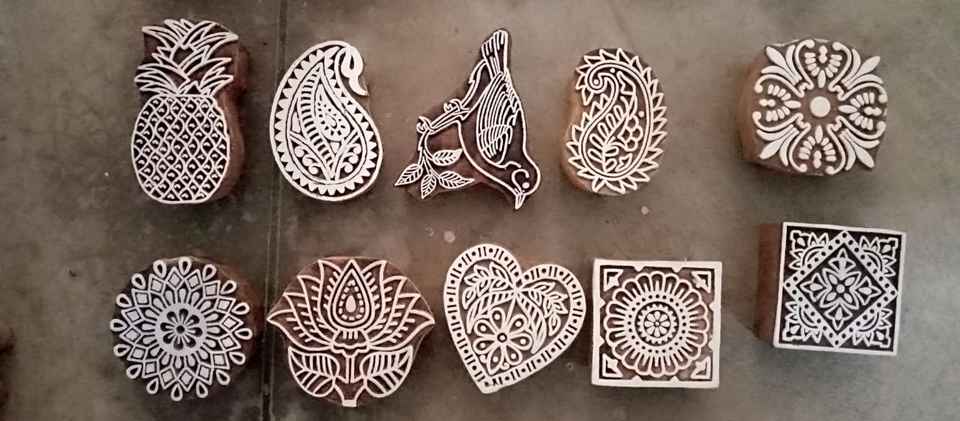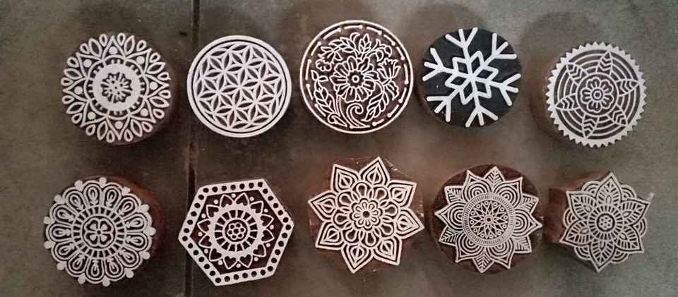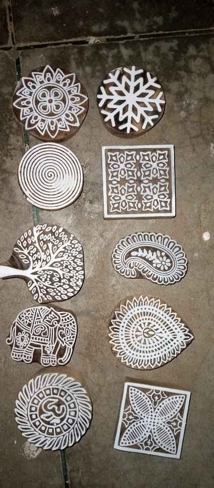 บล็อกไม้ขนาดเล็กที่ทำเองเหมาะสำหรับศิลปะเฮนน่าและการพิมพ์สิ่งทอที่มีอยู่ในหลากหลายรูปแบบของการออกแบบ