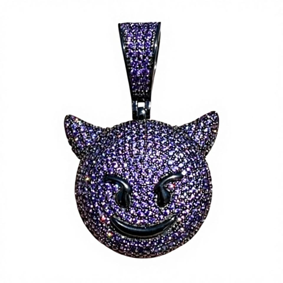 Custom Made Solid Gold Plated 925 Sterling Silver Iced Out Purple Simulated Diamond Classic Devil Face Charms Party