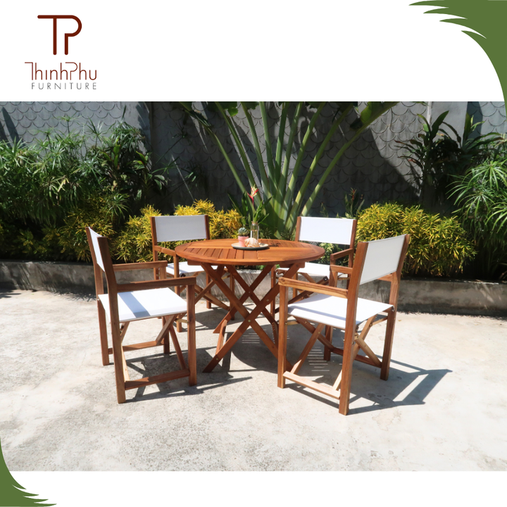 เฟอร์นิเจอร์รับประทานอาหารกลางแจ้งไม้เนื้อแข็งสั่งทำพิเศษ โต๊ะพร้อมเก้าอี้ 4 ตัว เป็นมิตรกับสิ่งแวดล้อม ทนทาน ทำความสะอาดง่าย เหมาะสำหรับโรงแรมและร้านอาหาร