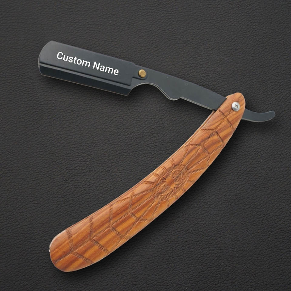 มีดโกนหนวดสำหรับผู้ชายมีดโกนหนวดใบมีดเดี่ยวแบบตรงด้ามจับทำจากสเตนเลสสตีลสลักลาย