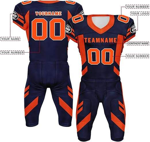 ชุดฟุตบอลอเมริกันแบบสั่งทำพิเศษสำหรับผู้ชาย พร้อมกางเกง ชุดฟุตบอลแบบสั่งทำพิเศษพร้อมโลโก้และชื่อทีม