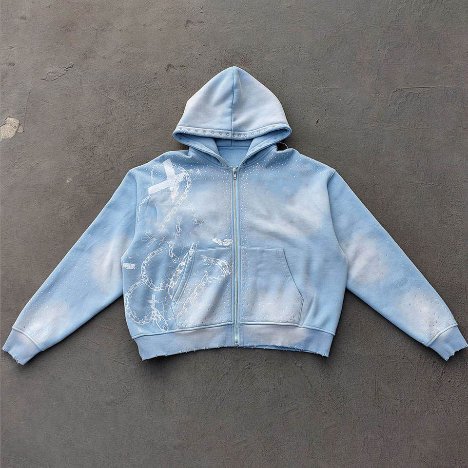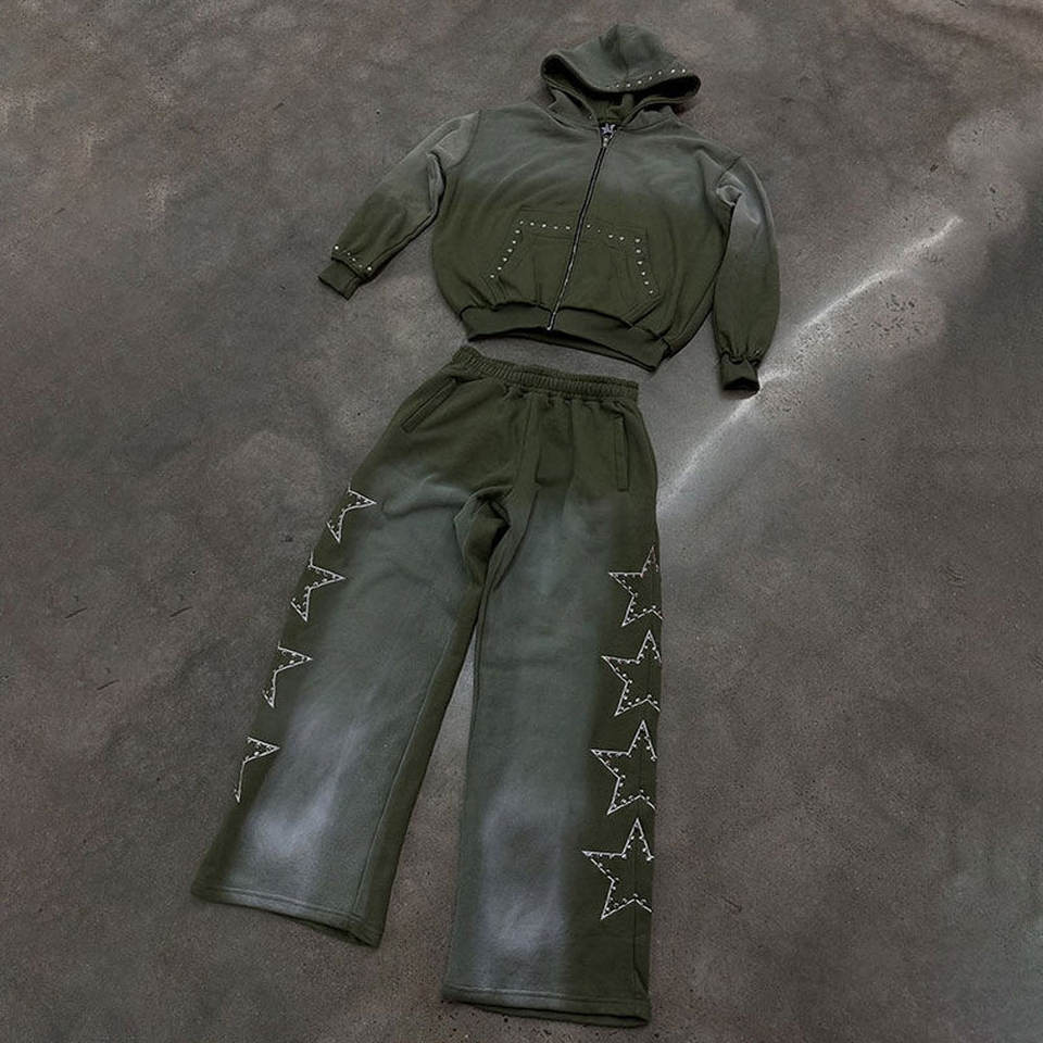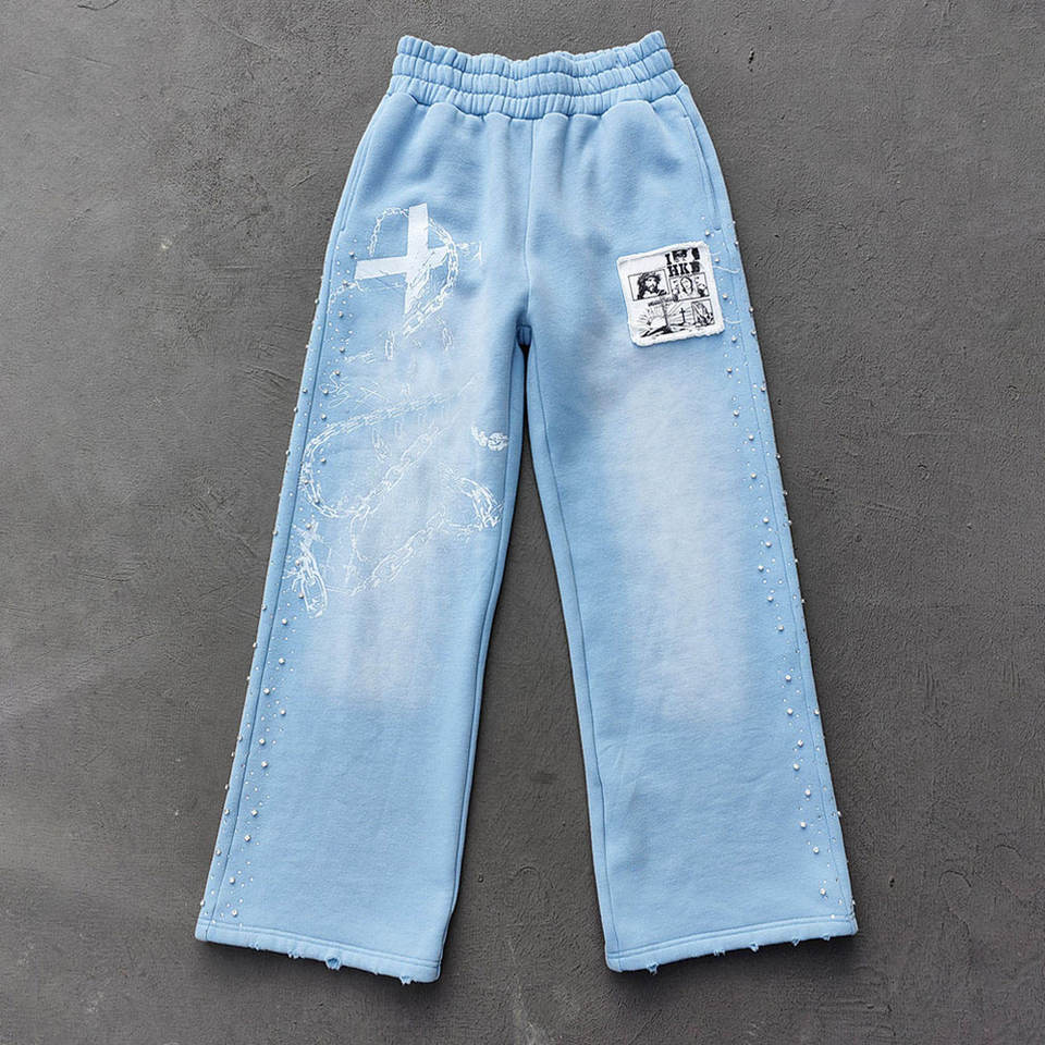ชุดวอร์มสั่งทำพิเศษ ลวดลายซีดจางแบบซันเฟด พร้อมลายสกรีน งานปะติด และประดับด้วยคริสตัล ผู้ผลิตขายส่ง