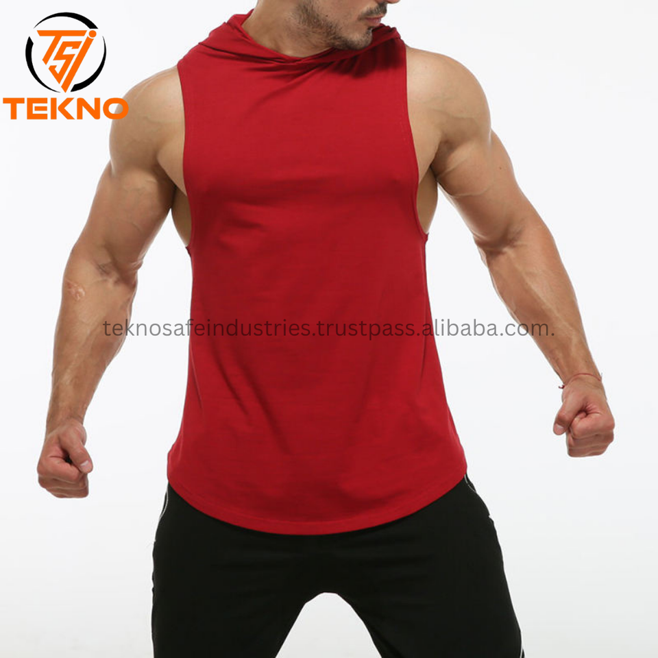 เสื้อกล้ามออกกำลังกายแขนกุดมีฮู้ดสำหรับผู้ชายเสื้อโชว์กล้ามแบบมีซิปตัดโลโก้ได้ตามต้องการ