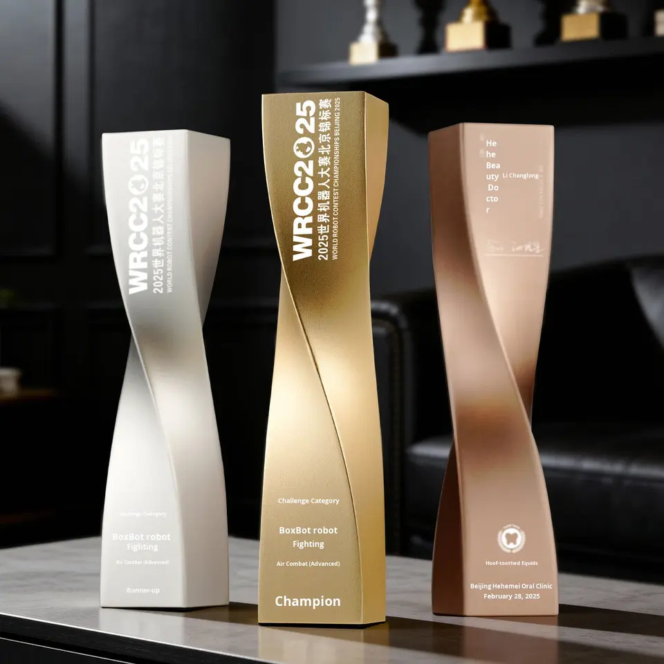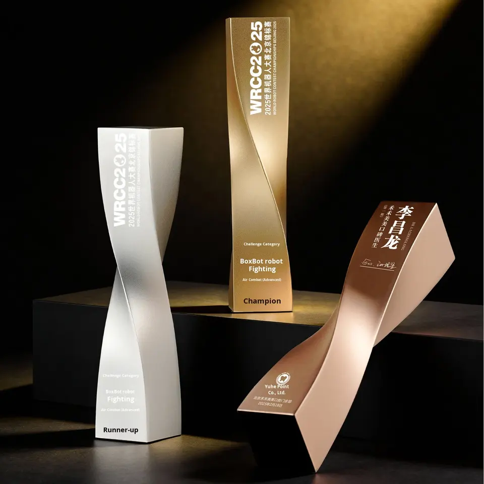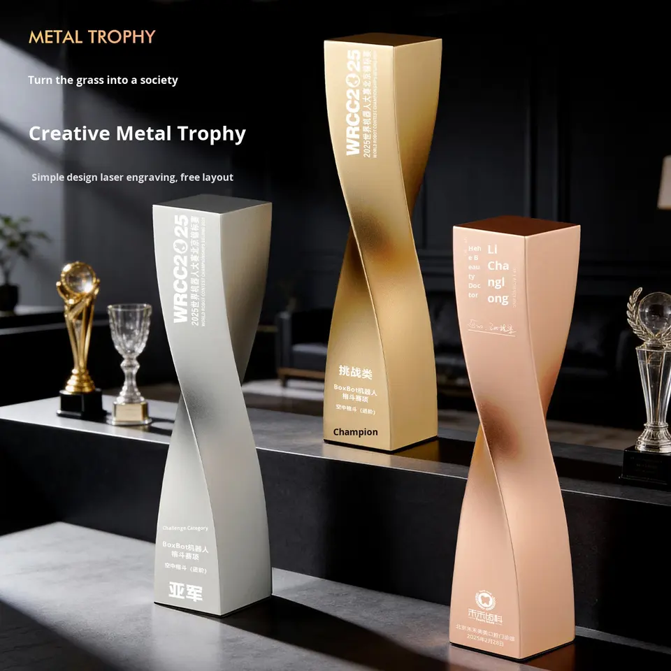 รางวัลโลหะแบบกำหนดเอง รุ่นใหม่ ปี 2025 สำหรับพนักงานดีเด่น รูปทรงเสาบิด ผลิตในจีน พร้อมสลักชื่อตามสั่ง