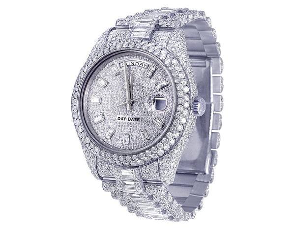 นาฬิกาข้อมืออัตโนมัติ VVS Moissanite ประดับเพชรทำจากสแตนเลสหน้าปัดเพชรทำจากแฟชั่นหรูหราแบบฮิปฮอป