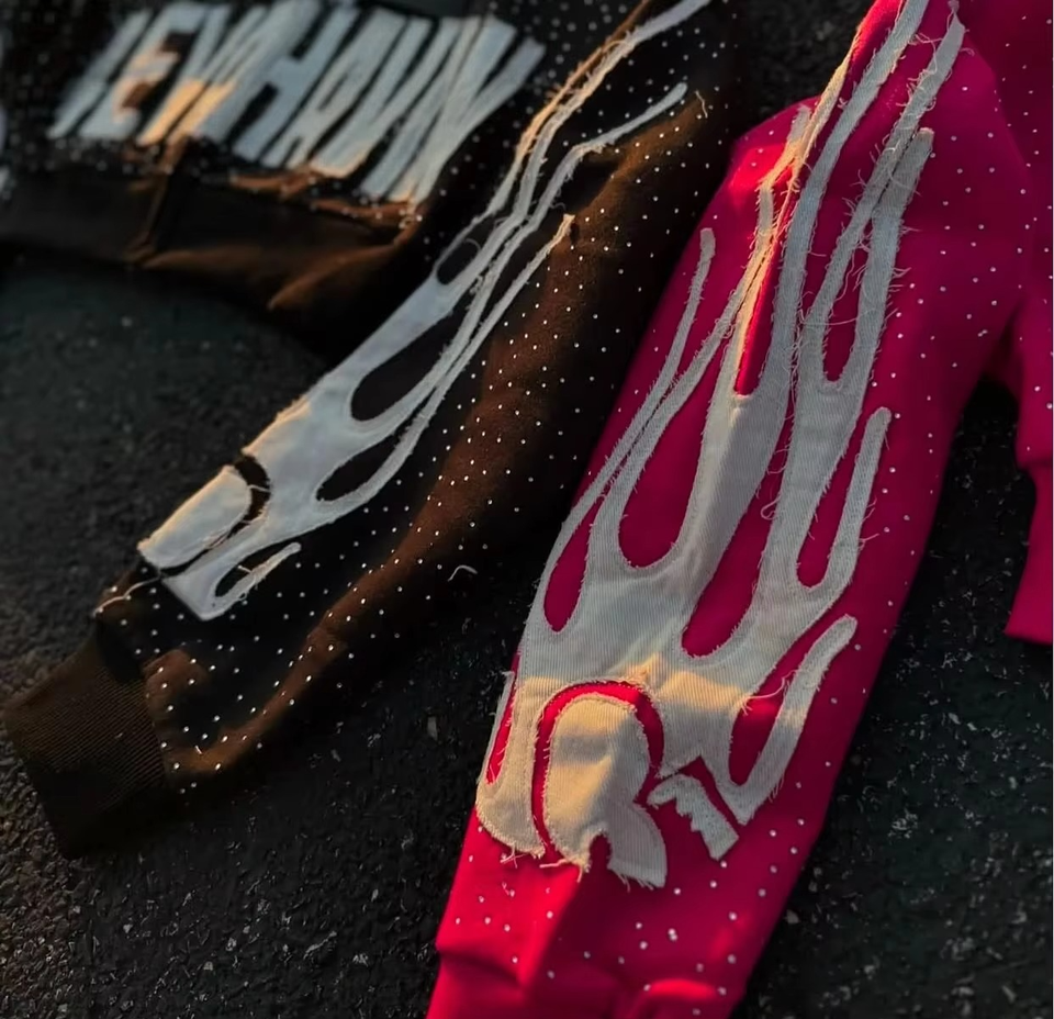 เสื้อฮู้ดซักกรดสไตล์วินเทจสำหรับผู้ชายไซส์ XL ชุดผ้าระบายความร้อนปักพลอยเทียมมีฮู้ดปกเสื้อ