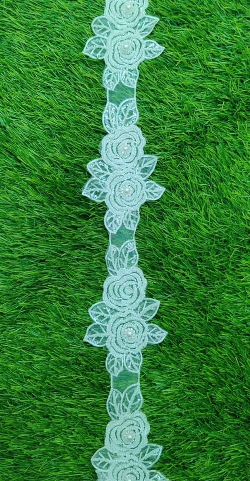 ผ้าลูกไม้ปักสีขาวสำหรับชุดแต่งงานพร้อมวัสดุปักตามสั่ง