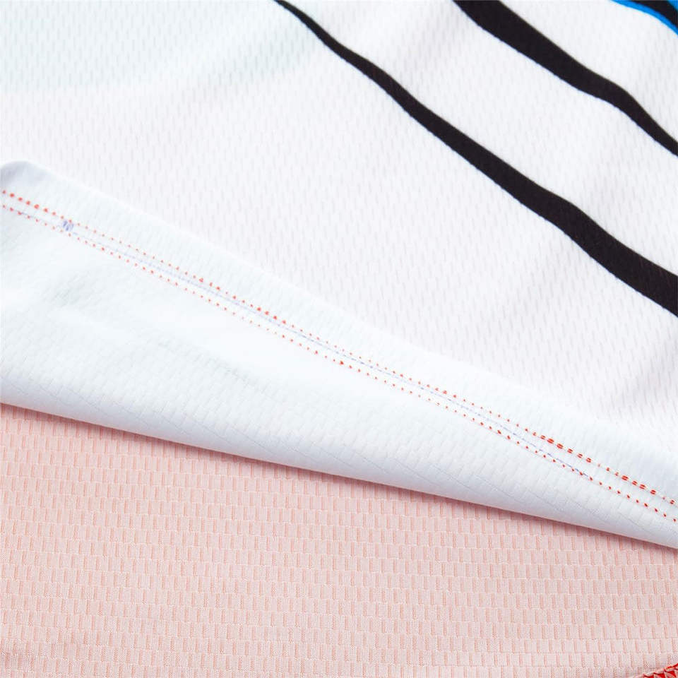 ตำแหน่งโลโก้:ด้านหน้า, ด้านหลัง, แขนเสื้อด้านซ้าย, แขนเสื้อด้านขวา, ขอบล่าง, หลังคอ