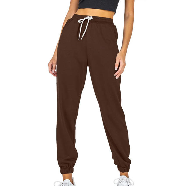 กางเกงออกกำลังกายขาตรงเอวสูงสำหรับผู้หญิงกางเกงออกกำลังกายผ้าฝ้าย100% แบบลำลองขายาวสำหรับฤดูหนาวทำตามสั่ง