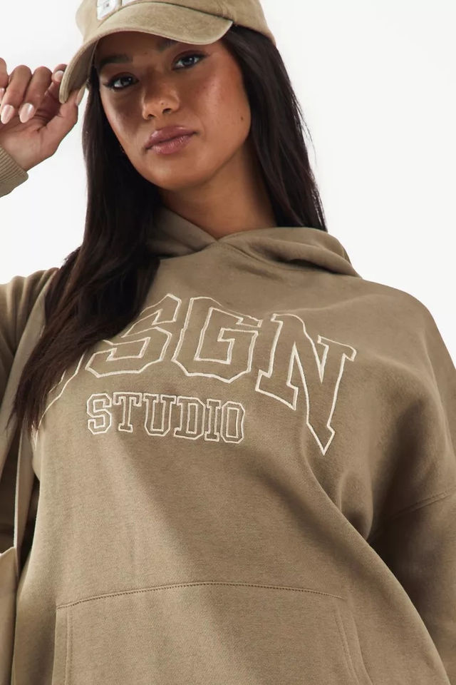 ชุดวอร์มผู้หญิงแบบสั่งทำพิเศษ ทรงโอเวอร์ไซส์ ปักลาย มีฮู้ด ผ้าฝ้ายออร์แกนิค 100% ชุดเซ็ต 2 ชิ้น