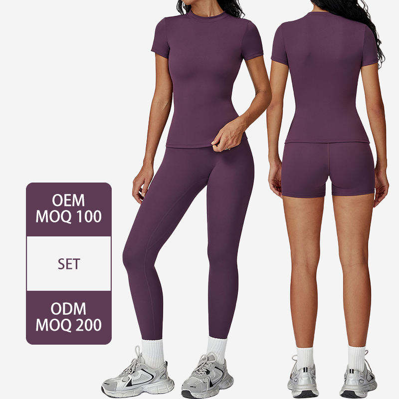 ชุดโยคะแบบไร้ตะเข็บ 2 ชิ้น สำหรับผู้หญิงไซส์พลัส ผลิตตามสั่ง ระบายอากาศได้ดี ยกกระชับสะโพก ชุดออกกำลังกาย โลโก้ด้านหน้า คุณภาพสูง