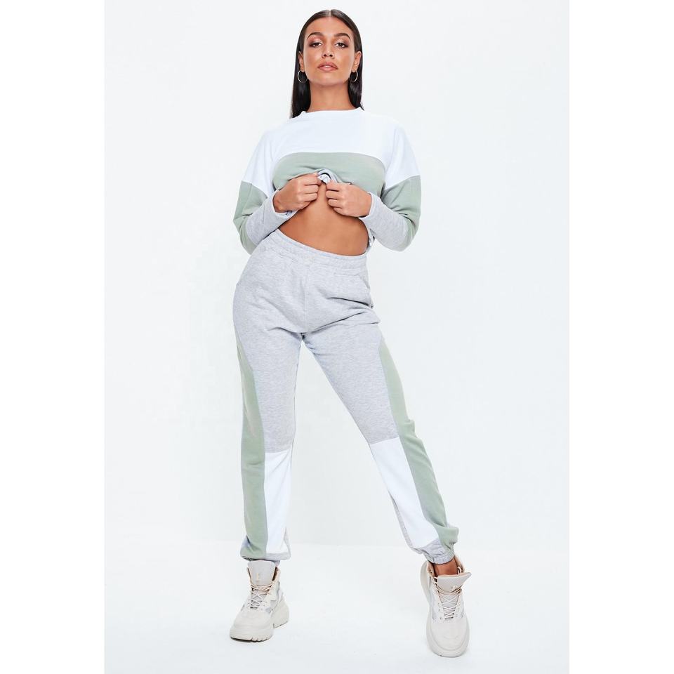 ชุดวิ่งขนแกะหนาสำหรับผู้หญิงชุดออกกำลังในยิมชุดออกกำลังแบบโอเวอร์ไซส์ตกแต่งเสื้อครอปท็อปลูกไม้แบบกำหนดเอง