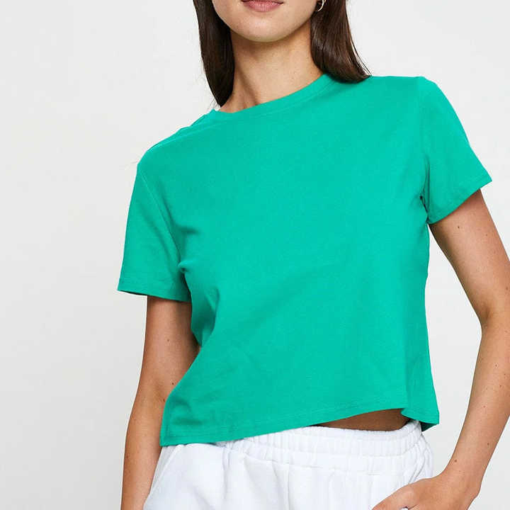 เสื้อยืดลำลองผู้หญิงสั่งทำพิเศษ ผ้าฝ้าย 100% เนื้อนุ่ม คอกลม รับผลิตแบบ OEM แบรนด์ส่วนตัว MOQ ต่ำ หลายสี
