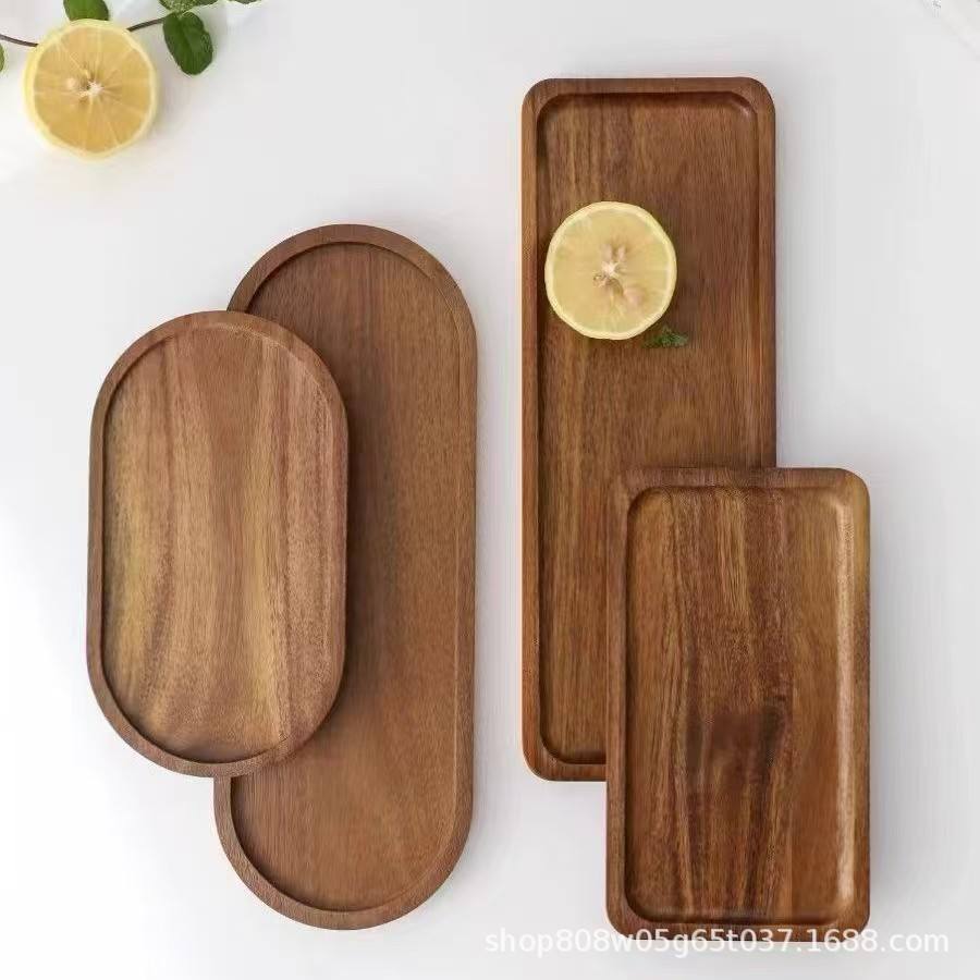 Custom Made Wooden Serving Tray Solid Wood Round Retro Color For Dessert Fruit Tea Display Shandong Origin LY03029