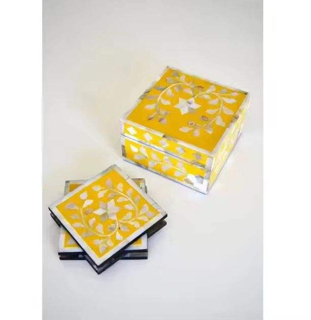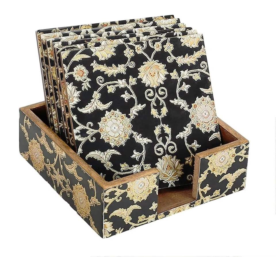 ชุดถาดรองแก้วทำจากไม้พร้อมชุดมินาคาริสีทองสำหรับตกแต่งบ้านร้านค้าตามสั่ง