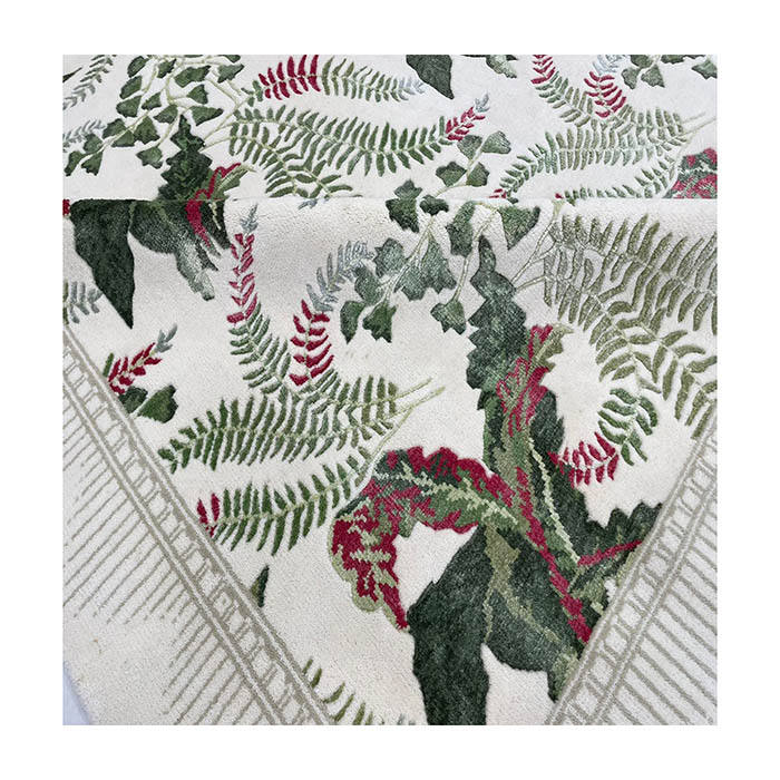 พรมขนสัตว์เทนเซลชั้นสูงดีไซน์ดอกไม้สีขาวสีเขียวใบไม้ทำด้วยมือจากโรงงานผลิตตามสั่งทันสมัย
