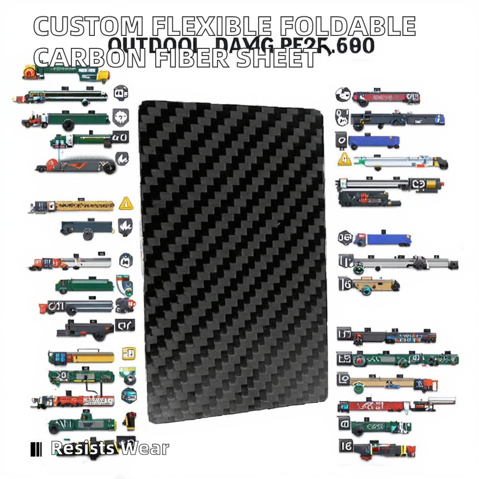 แผ่นคาร์บอนไฟเบอร์แบบยืดหยุ่นสั่งทำพิเศษ ตัดด้วยเครื่อง CNC สำหรับเด็กชาย เด็กหญิง อุปกรณ์เสริมกระเป๋าเดินทางในรถยนต์-พับได้ ทนต่อการขัดถู