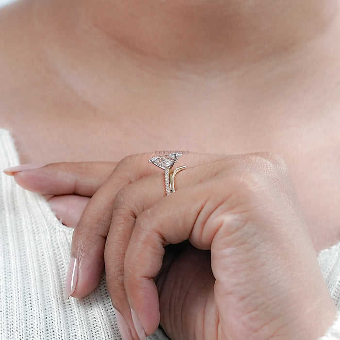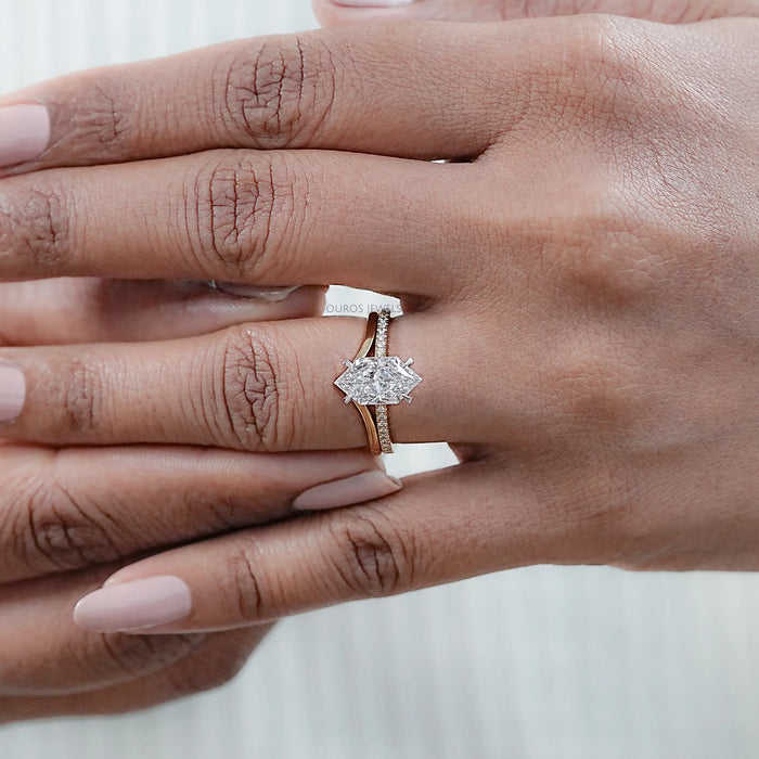 แหวนหมั้นเพชรแบบโค้งสำหรับผู้หญิงแหวนทองหรูหราทำโลโก้ของคุณเอง