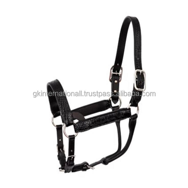 Custom Made crocodile Leather Horse Halter with Double Crown Buckle Two Part Adjustable Chin Leather Halter Horse Bulk Order