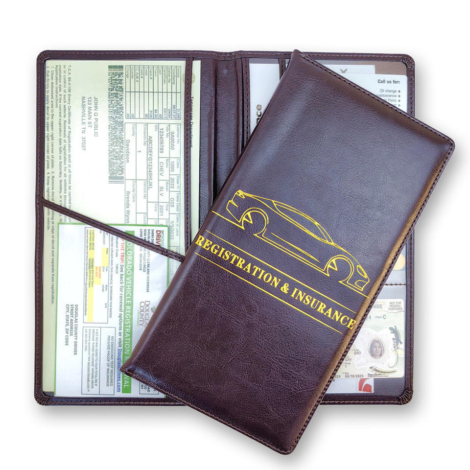 กล่องใส่เอกสารหนัง PU ปิดด้วยแม่เหล็กที่ใส่เอกสารการจดทะเบียนรถยนต์แฟ้มใส่เอกสาร