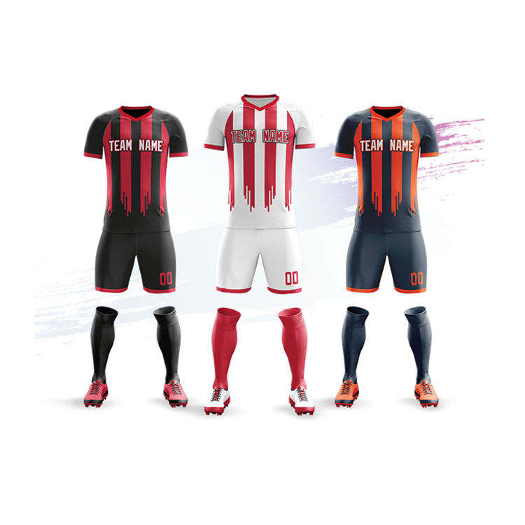 ชุดกีฬาชุดเล่นฟุตบอลของคุณพิมพ์ซับลิเมชันสำหรับผู้ผลิตเสื้อฟุตบอลแบบออกแบบได้ตามต้องการชุดเสื้อฟุตบอลแขนสั้น