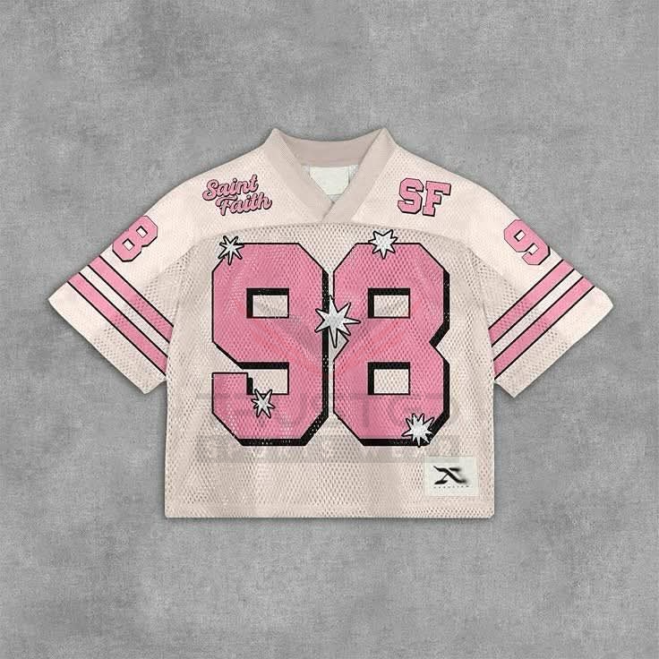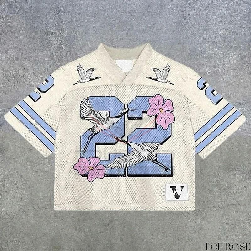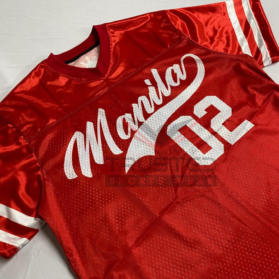 เสื้อเจอร์ซีย์ฟุตบอลอเมริกันสไตล์วินเทจทรงโอเวอร์ไซส์แบบสตรีทแวร์ แขนสั้น ระบายอากาศ แห้งเร็ว