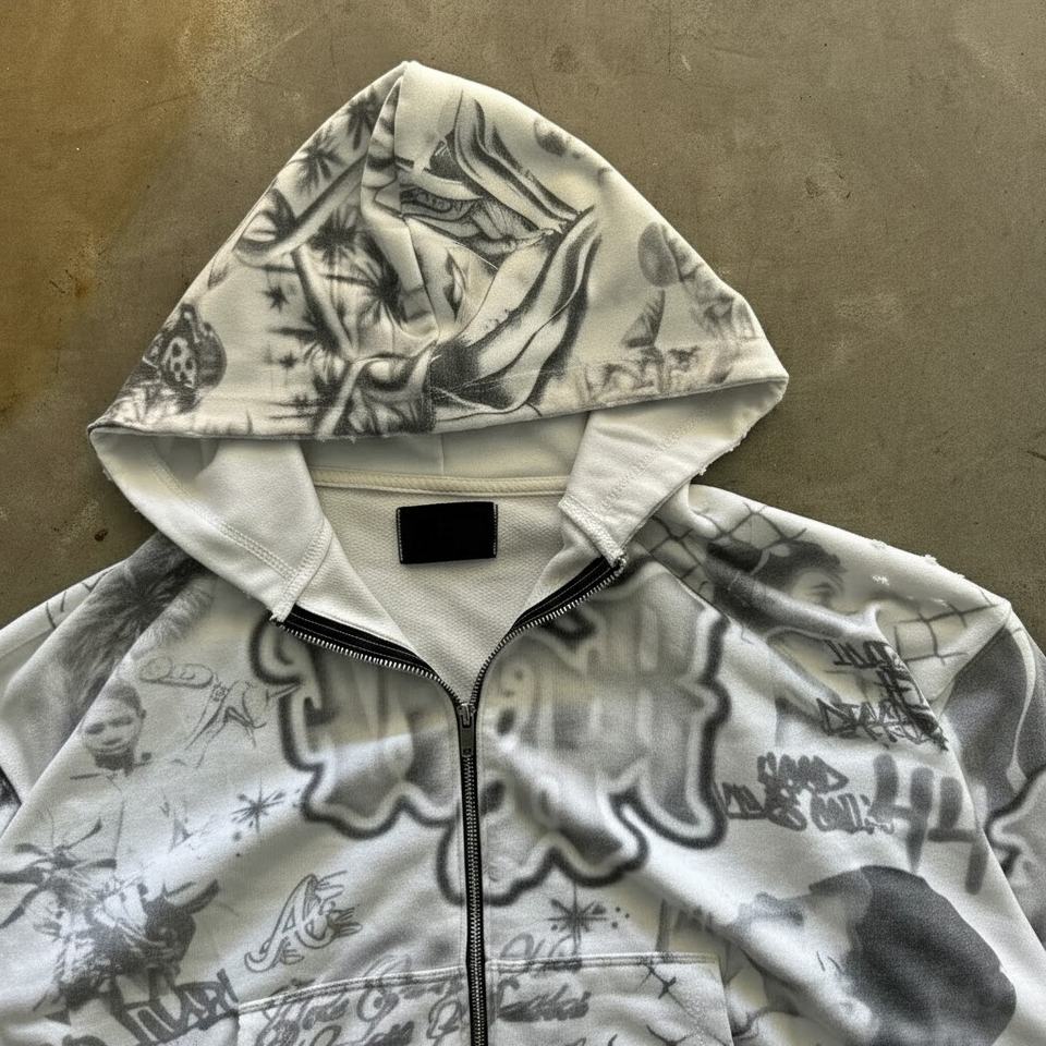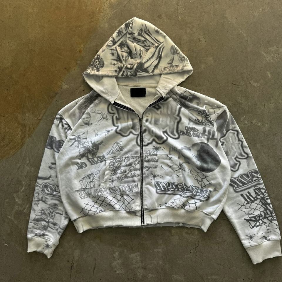 รับผลิตเสื้อฮู้ดดี้ครอปพิมพ์ลาย DTG สไตล์วินเทจสำหรับผู้ชาย ล้างสีแบบ Stone Acid Wash ทรงไหล่ตก ผลิตโดยผู้ผลิตเสื้อผ้าผู้ชาย