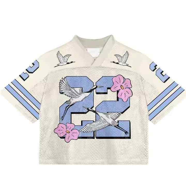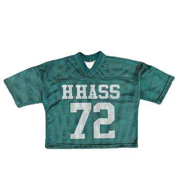 เสื้อครอปตาข่ายถักคอวีสำหรับทั้งชายและหญิงขนาดใหญ่พิเศษเสื้อฟุตบอลแบบอเมริกันวินเทจผลิตตามสั่ง