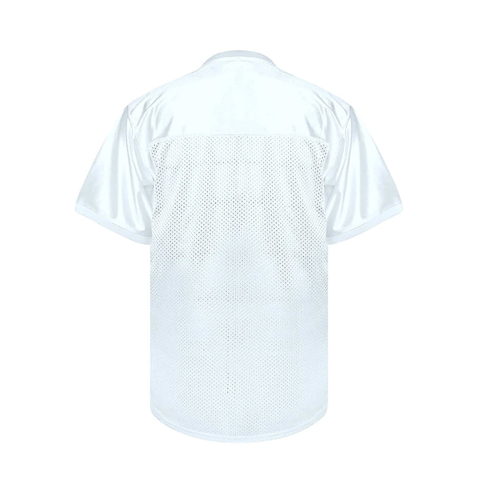 เสื้อเจอร์ซีย์ฟุตบอลสไตล์อเมริกันวินเทจผ้าถักคอวีพิมพ์ลายไฮสตรีทฟุตบอลของผู้ชายผลิตตามสั่ง