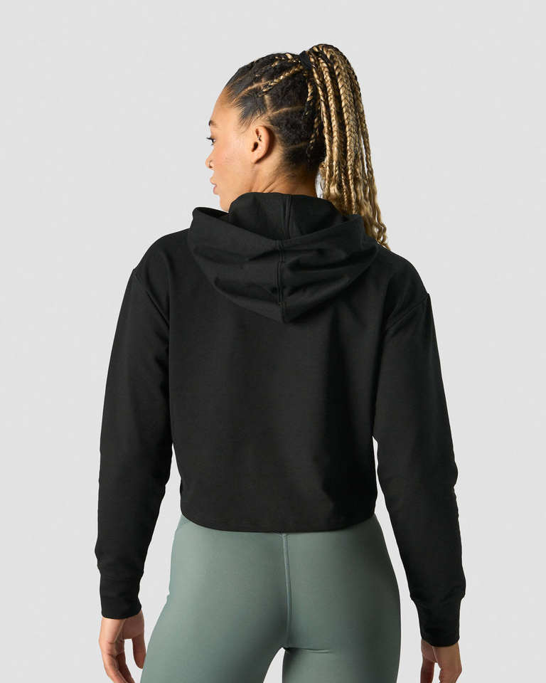เสื้อฮู้ดครอปสีดำเรียบสำหรับผู้หญิง ผลิตตามสั่ง ผ้ากันยับ ระบายอากาศได้ดี เหมาะสำหรับออกกำลังกายและชุดกีฬา