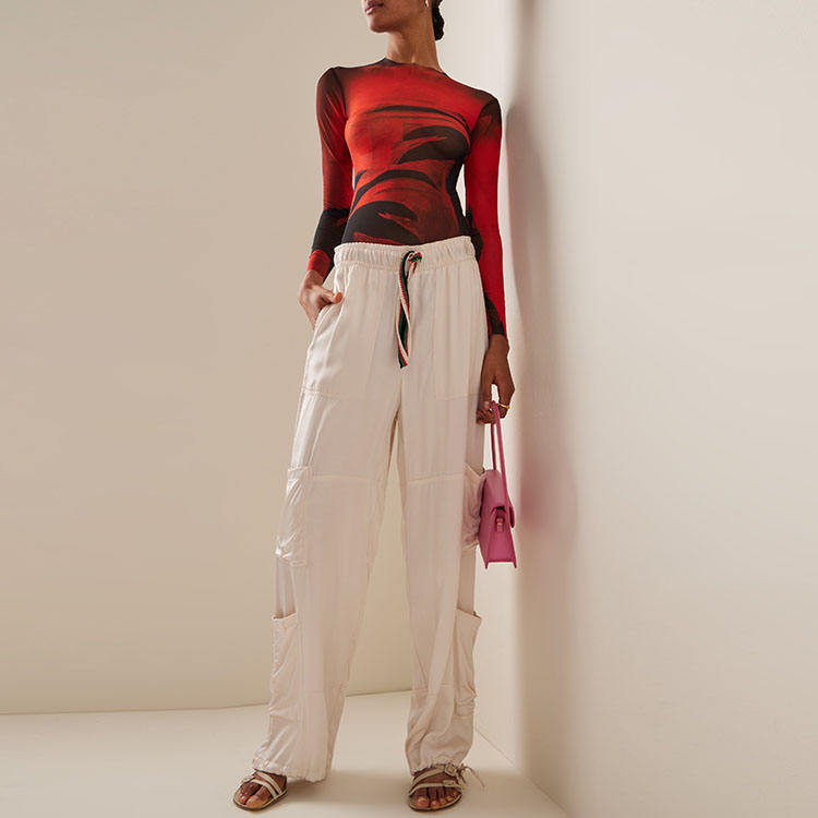 เสื้อยืดแขนยาวทรงเข้ารูปสำหรับผู้หญิง ผ้าทอเบาสบาย ยืดหยุ่น ดีไซน์เก๋ ผลิตตามสั่ง เหมาะสำหรับใส่ลำลองช่วงฤดูร้อน