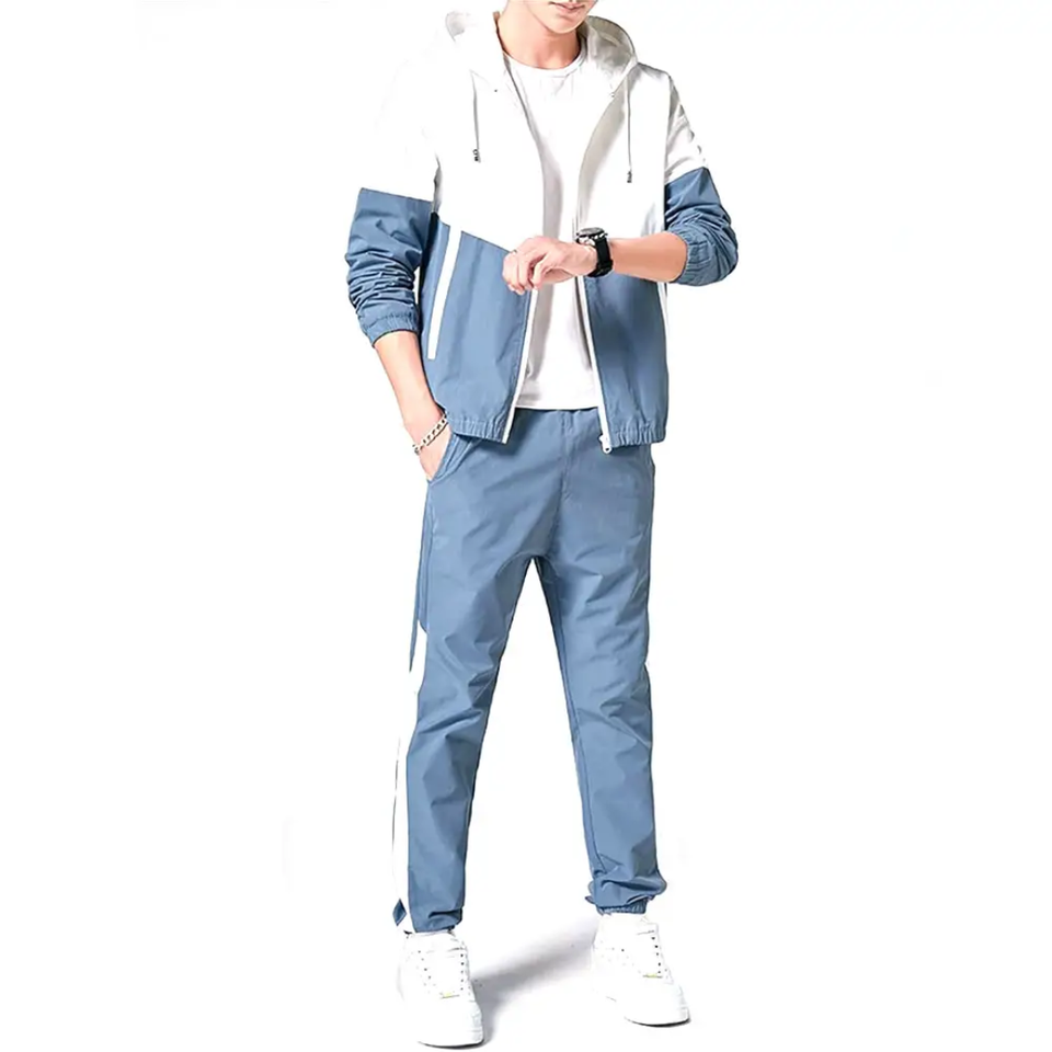 ชุดวอร์มผ้าไนลอนสำหรับผู้ชายชุดกันลมบล็อกสีปักสไตล์สตรีทแวร์สำหรับฤดูร้อน